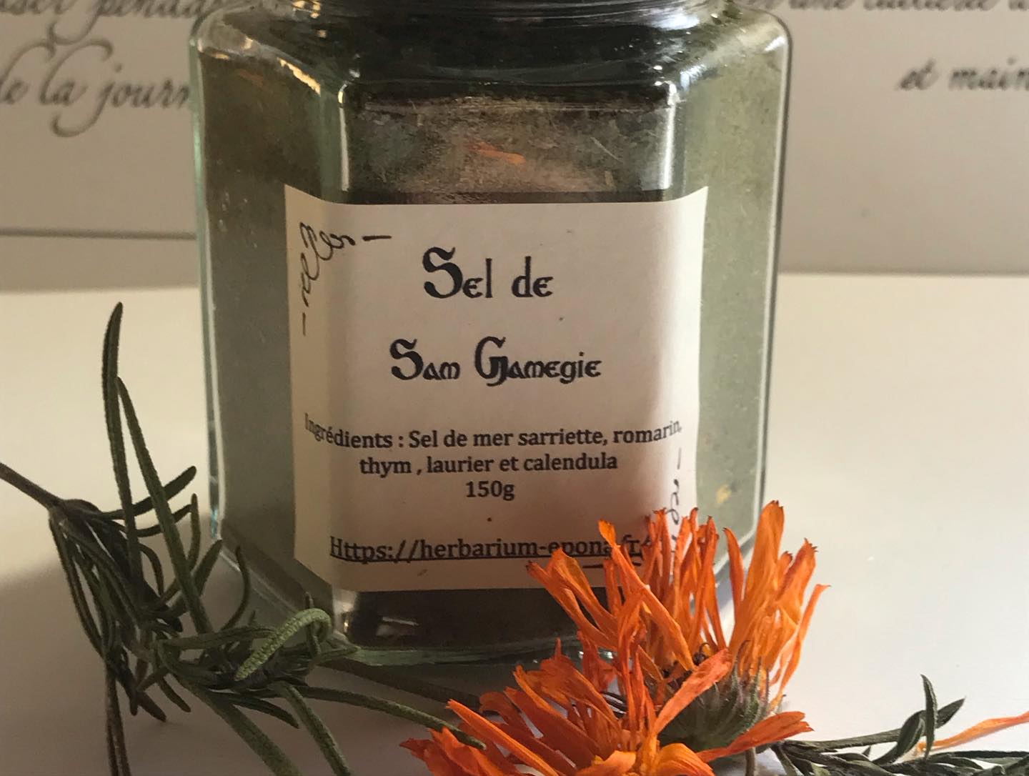 Le Sel de Sam Gamegie ; sel de mer , sarriette, romarin, thym, laurier, et calendula 150g