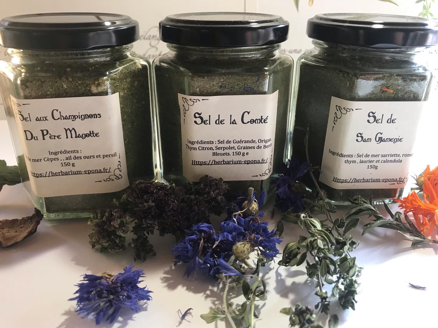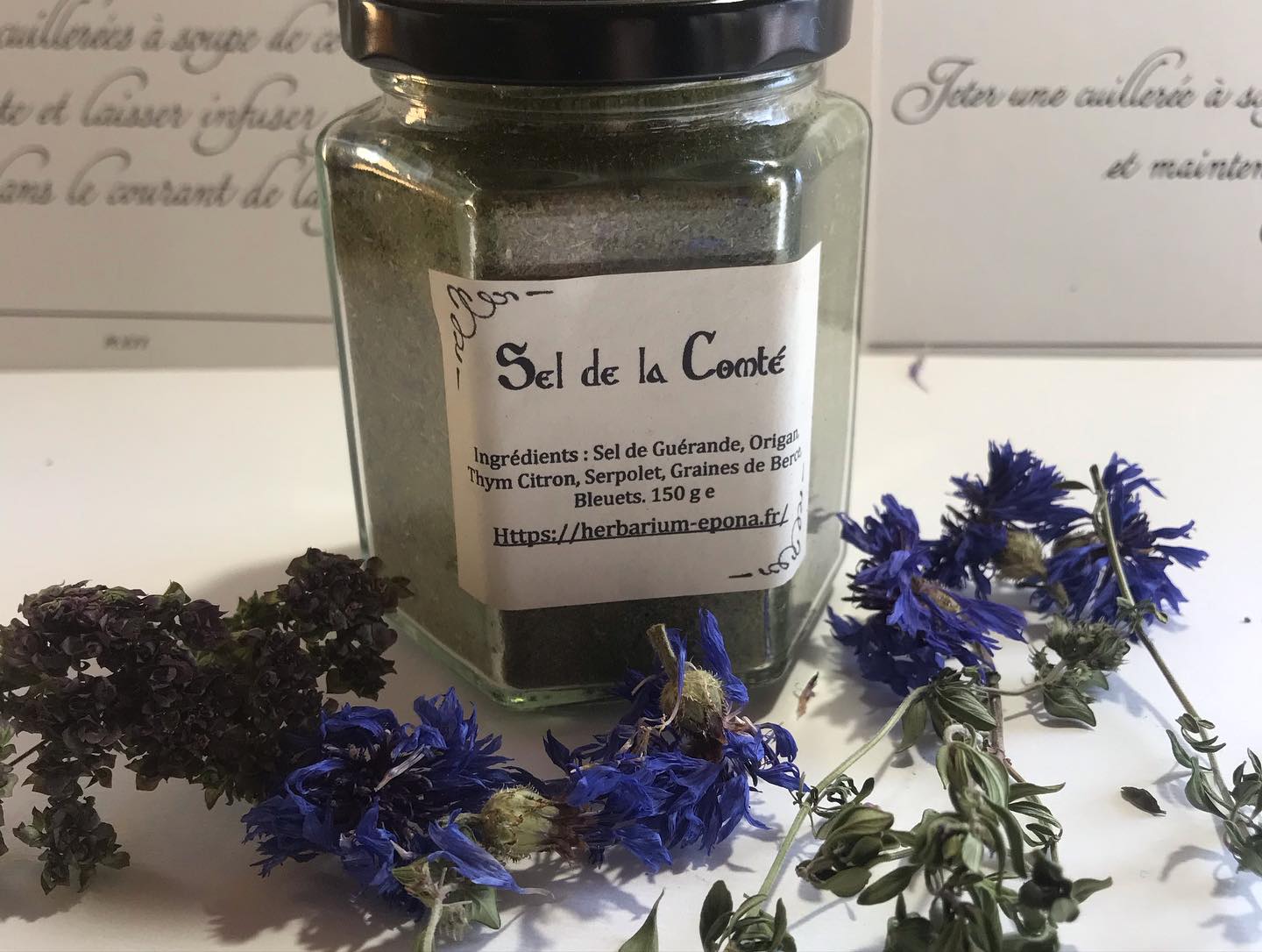 Le Sel de la Comté ; sel de mer , origan, thym citron, serpolet, graines de berce et bleuets 150g